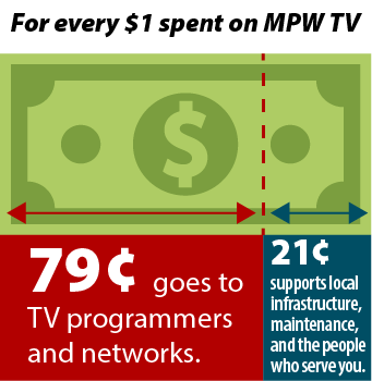 “We know video price increases are impactful for customers, and we work hard to limit them whenever possible,” General Manager, Gage Huston said. “As a municipal utility, MPW carefully manages the costs we can control while continuing to provide services our community values. For every dollar customers pay for their MPW TV package, about $0.79 goes directly to programming costs, with the remaining $0.21 covering local infrastructure and the teams who deliver that service.”