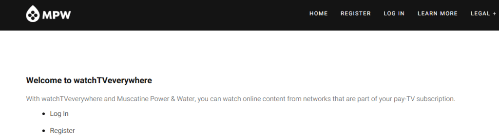 Use the information below to sign up for WatchTVEverywhere (you must have MPW TV’s ‘Select’ package or above to use this feature)